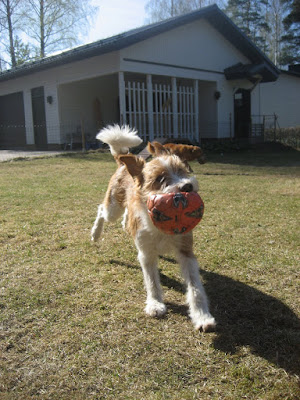 Kovasti olen onnellinen siitä miten hyvin Ruca on laumaan sopeutunut. Leevin kanssa painii edelleen ja leikkiin kutsujana voi olla yhtä hyvin niin pikkumies kuin tolleriherrakin. Leeviltä saa pikkumies viedä nenän edestä lelut ja luut, mutta tosipaikan tullen tolluska osaa kuitenkin näyttää kuka vielä loppupelissä määrä ja silloin pikkumies ei hanttiin pistä. Lara on paljon ehdottomampi monessa suhteessa, mutta painileikit ja varsinkin kilpajuoksut ovat läntsyjen päivittäistä puuhaa. Rintarinnan nuo painavat pihalla muutenkin paikasta toiseen.